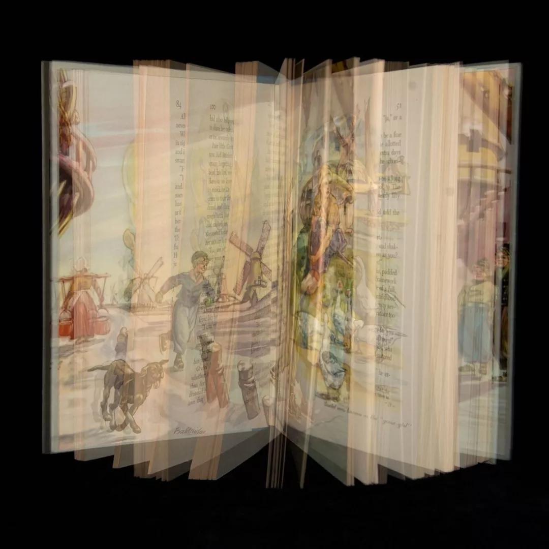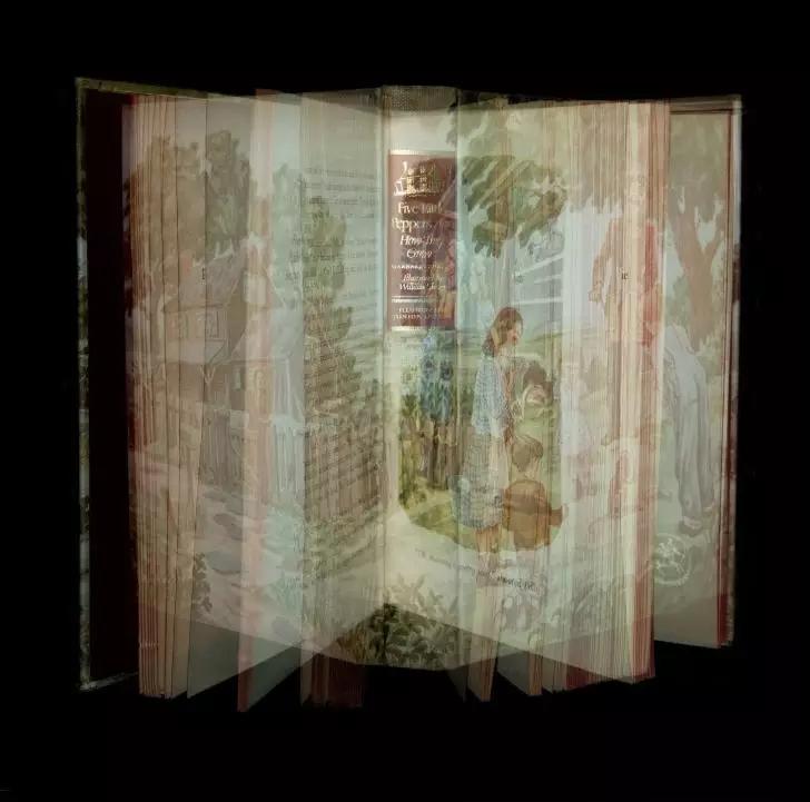 美國(guó)南加州的靜物攝影師埃倫·坎托(Ellen Cantor)就是一個(gè)特別喜歡閱讀的人,為了向一些童年的經(jīng)典故事致敬,她用多重曝光的手法將快速翻書的過(guò)程定格在了一張張靜止的照片中。