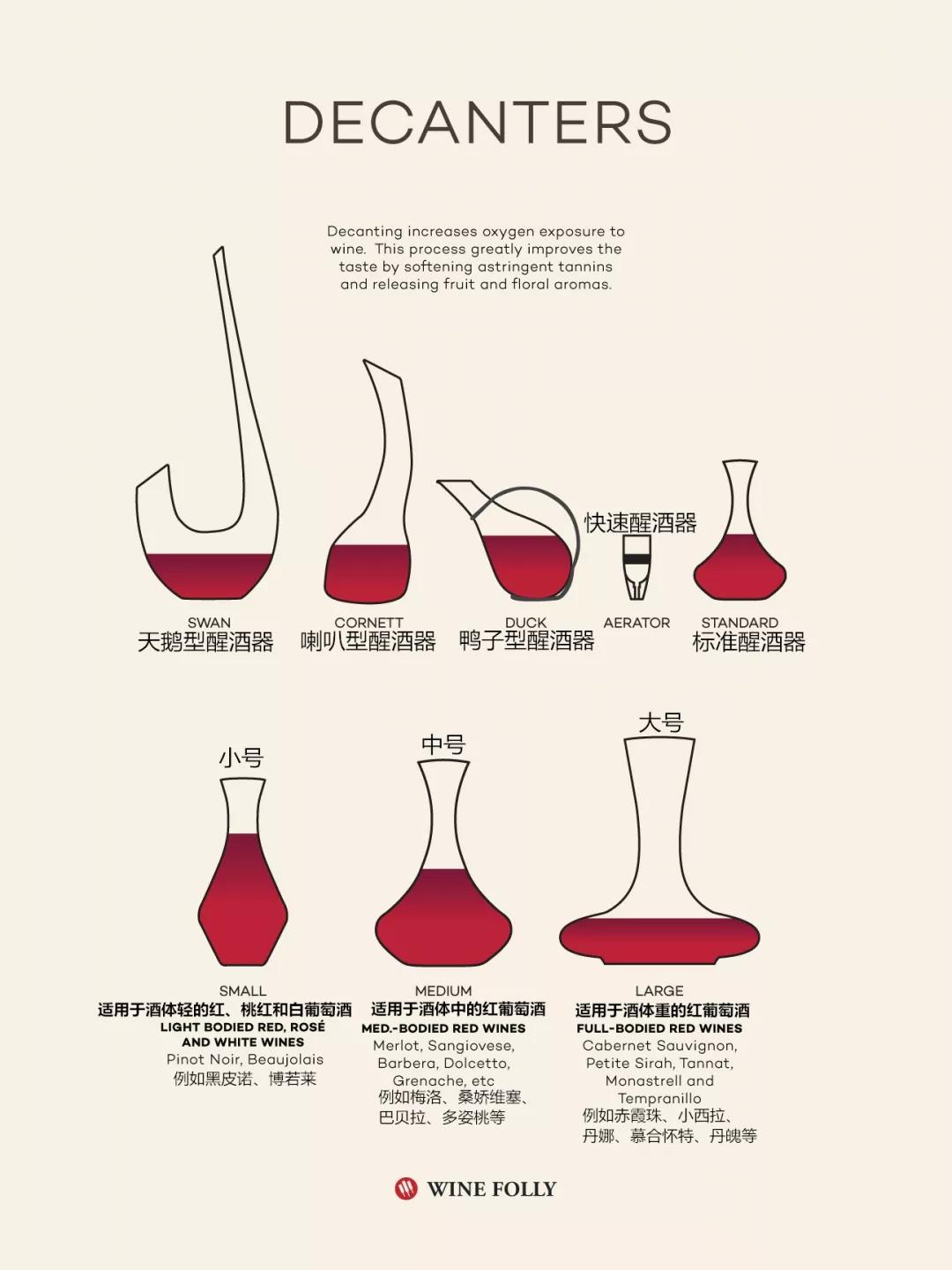 在“為什么要醒酒”里,我們已經(jīng)知道了醒酒主要是為了除渣和改善香氣。在“改善香氣”這一部分,我們提到了適度的氧化可以促進(jìn)酒中香氣的發(fā)展。