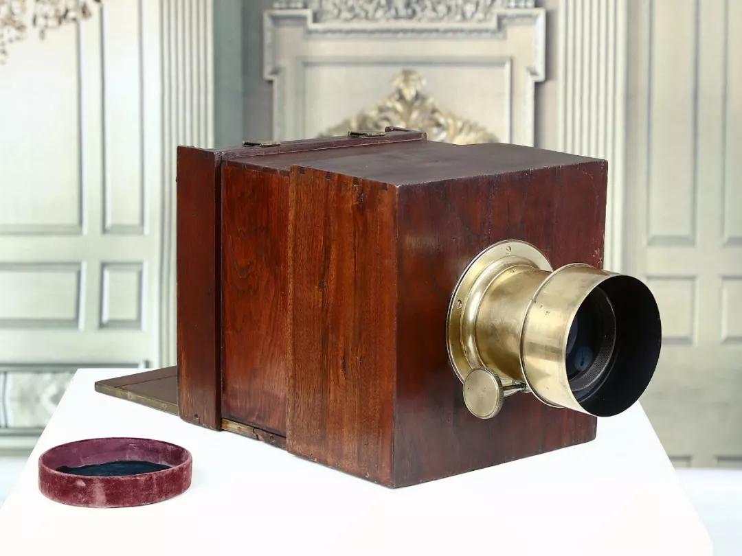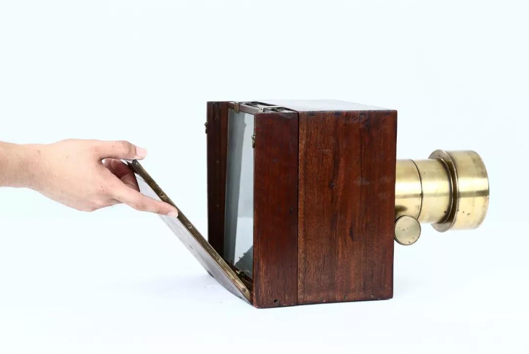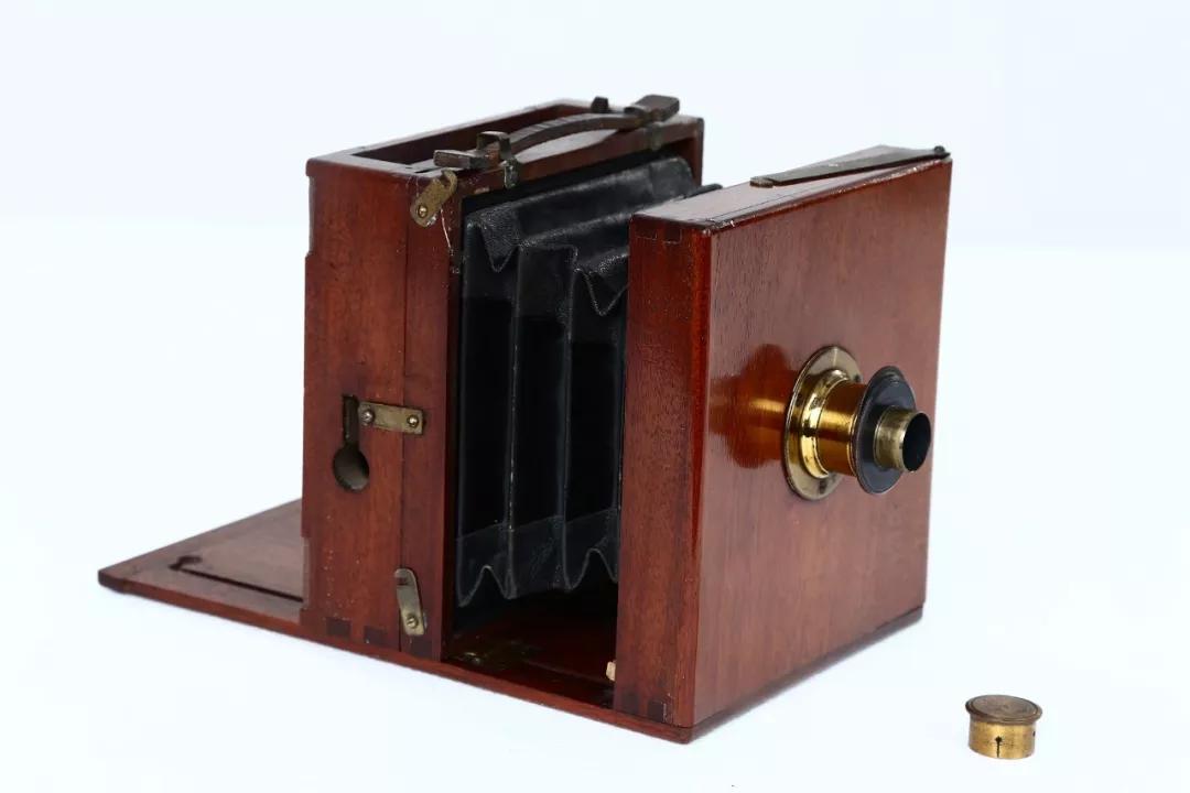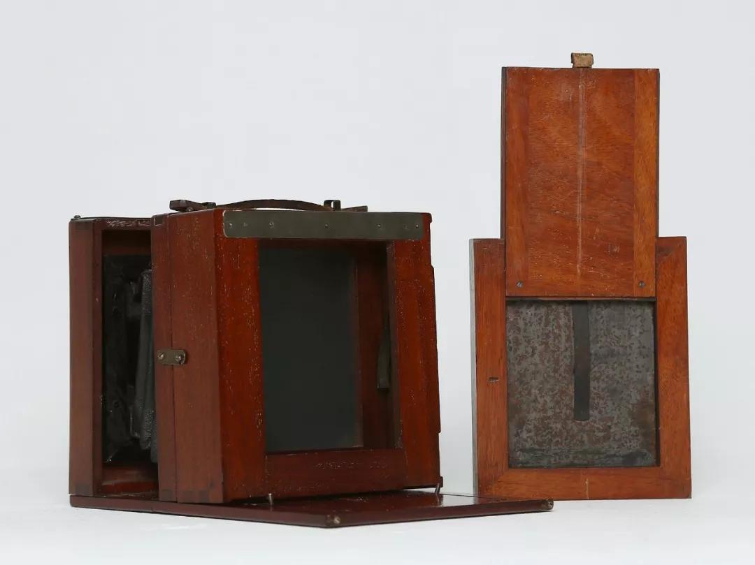 如果按機(jī)身材料分類,有木制和金屬制兩種;如果按調(diào)焦方式分類,有固定基座滑箱式、尾板滑箱式和皮腔折疊式多種;如果按照片形式分類,有普通照相機(jī)、立體照相機(jī)(1852 年法國(guó)人阿基利·基內(nèi)首創(chuàng),畫幅 120×240mm);如果按畫幅分類,既有6.5×8.5 英寸全版的,也有半版、1/4 版甚至 1 英寸畫幅的。