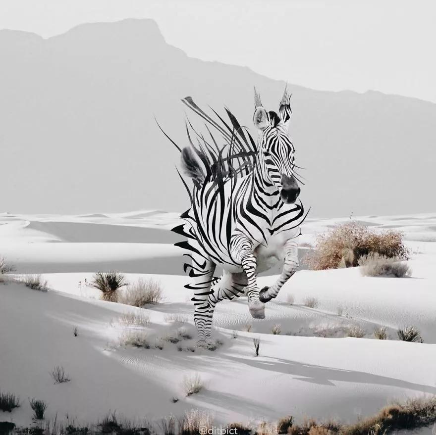 用一句話來概括就是:在他的手下,動(dòng)物們真的已經(jīng)被“玩壞”了!那么如何才能創(chuàng)作出如此創(chuàng)意十足的作品?阿迪亞表示,他喜歡在圖庫與社交媒體中尋找靈感,然后根據(jù)不同動(dòng)物的不同特點(diǎn),例如斑馬、長頸鹿和老虎的皮毛或皮膚,將動(dòng)物圖片編輯成自己腦海中的形象。鯨魚在沙漠中游泳、天鵝在太空翱翔,棕熊背著一座雪山……一起欣賞!