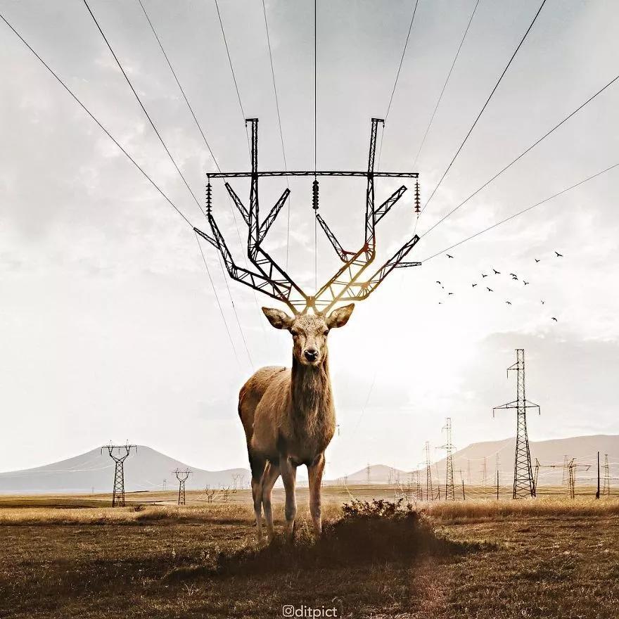 你可曾想過從一個(gè)別樣的視角觀察世界?在今年只有 23 歲的印尼數(shù)字藝術(shù)家阿迪亞·阿利安托(Aditya Aryanto)眼里,Photoshop 就是重新觀察世界和改變世界的最好途徑。他的作品中大多用 PS 巧妙營造動(dòng)物與自然景物混搭融合的狀態(tài)、動(dòng)物陷入異常尷尬或意想不到境地,以及單方面改變動(dòng)物形狀——將動(dòng)物的外形“變圓”或“變方”。