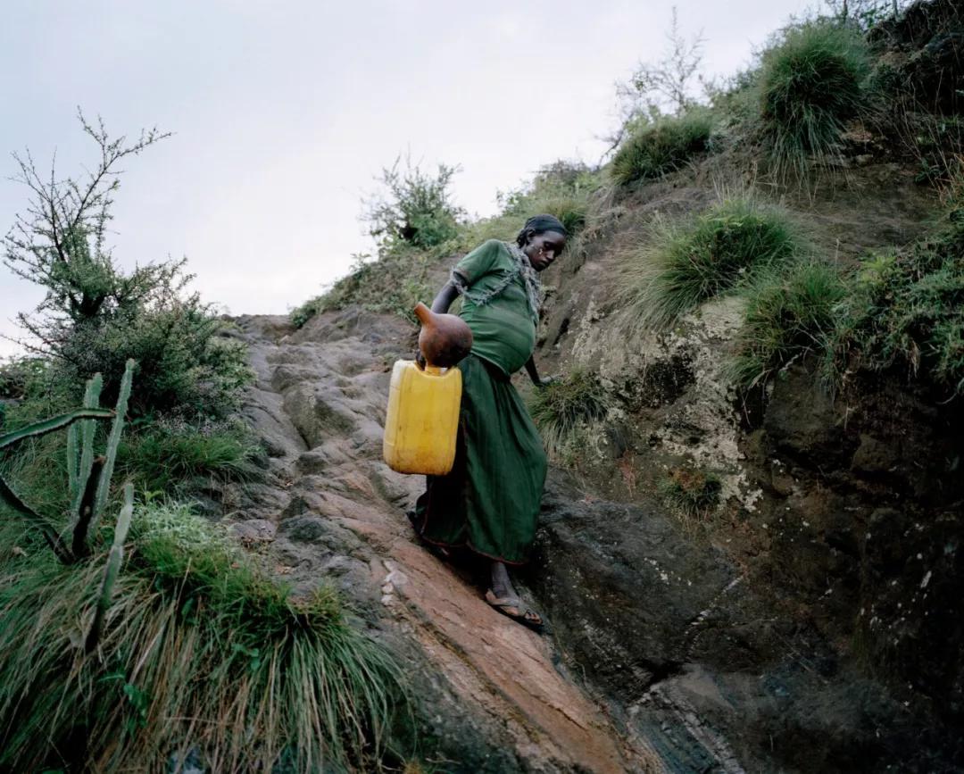 埃塞俄比亞 Konso 地區(qū),已有 8 個月身孕的婦女走下緩坡打水