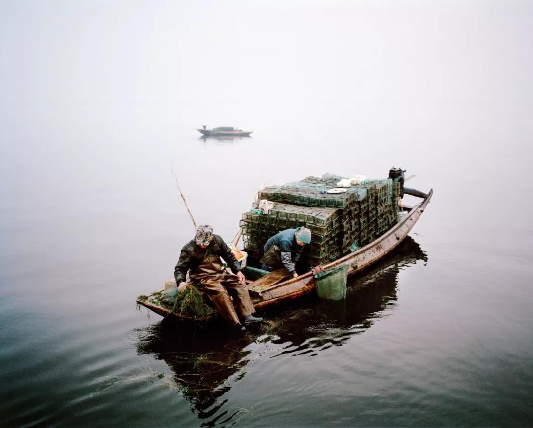 湖北洪湖,一對捕蝦的夫婦