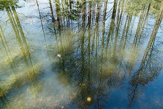 這張構(gòu)圖方法,經(jīng)常被運用于倒影攝影中。尋找平靜的水面,以表現(xiàn)倒影為主;同時,又在畫面中保留部分地面景物作為陪襯。