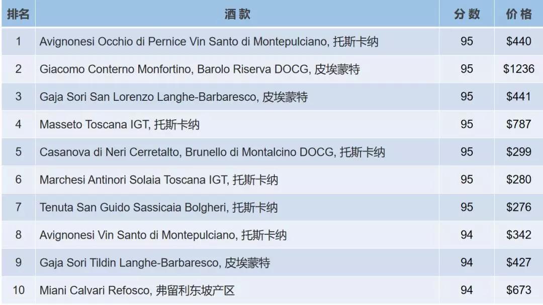 Wine-Searcher 意大利十優(yōu)名酒