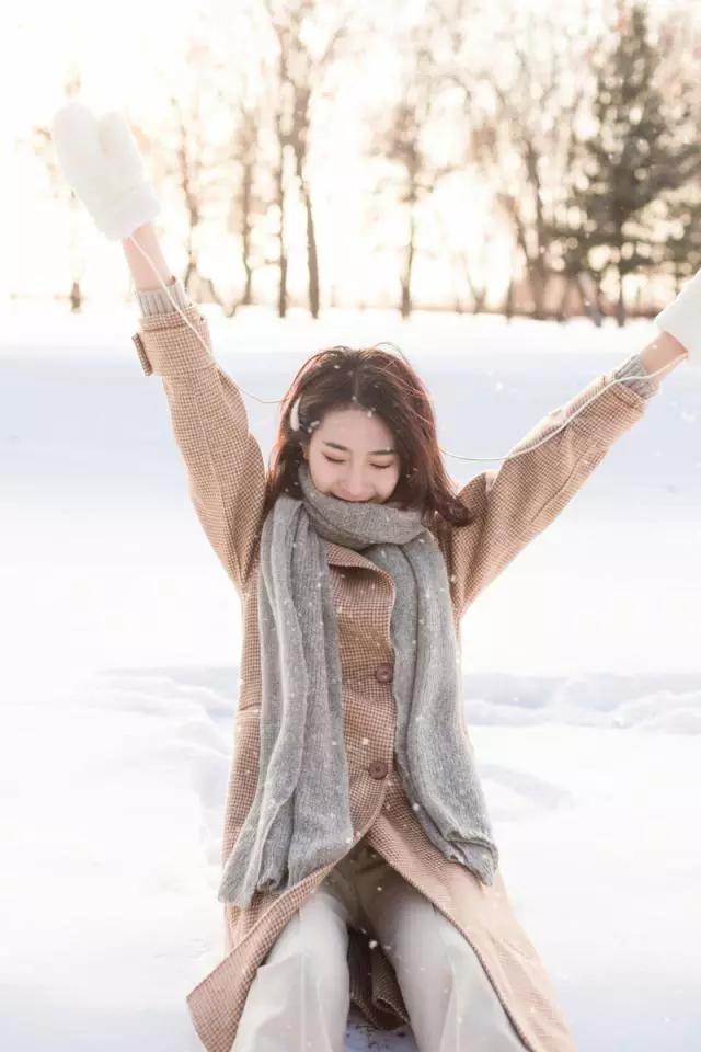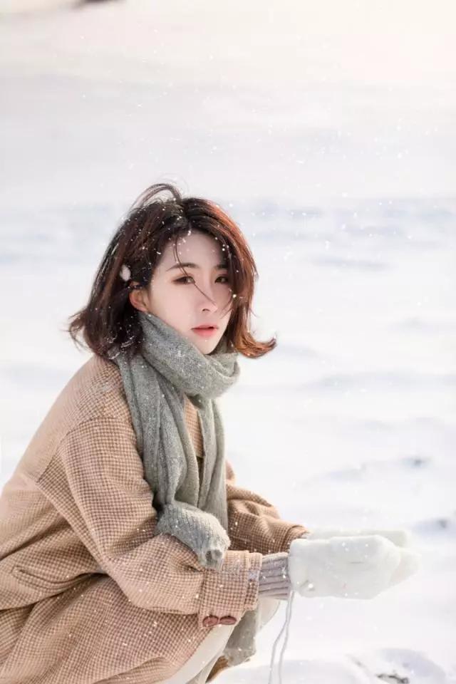 找一處雪比較多的地方,女生可以蹲在地上先玩雪,找個(gè)一個(gè)合適的角度,利用雪景可以將其看成純天然的白色背景布,回頭看鏡頭,眼神中透露出的熱情,足以溫暖寒冷的冬季。