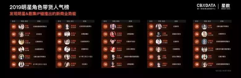 最近首屆互聯(lián)網(wǎng)影視文娛盛典推出的號(hào)稱國(guó)內(nèi)首份基于真實(shí)消費(fèi)數(shù)據(jù)的角色帶貨力榜單“2019明星角色帶貨人氣榜”。