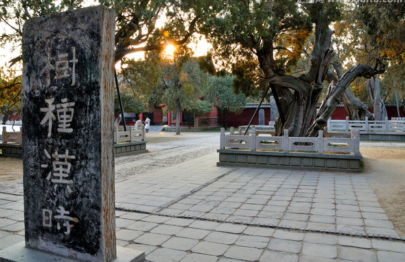 時(shí)光飛逝,轉(zhuǎn)眼到了民國(guó)年間,軍閥孫良誠(chéng)的部隊(duì)也駐扎在岱廟里,其中一個(gè)小士兵聽(tīng)說(shuō)了這個(gè)故事后,也要在旁邊的連理柏上試上一試,結(jié)果還沒(méi)來(lái)得及行動(dòng)呢,風(fēng)聲傳出去被當(dāng)時(shí)的道長(zhǎng)尚士廉?dāng)r住,報(bào)告給了他的長(zhǎng)官。偏巧這位長(zhǎng)官是一位敬神之人,命人把小士兵拖來(lái)用皮鞭抽了一頓(屬下冒犯神靈這還了得,闖禍的小士兵自然是逃躲不了皮肉之苦),小士兵懷恨在心,等到晚上月黑風(fēng)高無(wú)人之際,他把他的棉被沾滿(mǎn)煤油塞到連理柏中的一株,一把火燒毀了其中一株,當(dāng)年乾隆皇帝來(lái)到泰山時(shí)看到這株柏樹(shù)雙干而立,古柏參天,被它不屈的精神折服深深的印在腦海里,乾隆皇帝回到皇宮后憑借印象把它描繪了出來(lái),乾隆皇帝先后來(lái)泰山總共留下146首詩(shī)唯獨(dú)留下這一副畫(huà),我們現(xiàn)在看到正中的這個(gè)《御制漢柏圖贊》碑就是當(dāng)年乾隆皇帝憑借記憶畫(huà)下的畫(huà),不幸果然被乾隆爺言中,現(xiàn)在的連理柏已經(jīng)是一生一死,生離死別,漢柏?zé)o言,但我們相信他們會(huì)把生死相隨的承諾一直堅(jiān)守到永遠(yuǎn)。