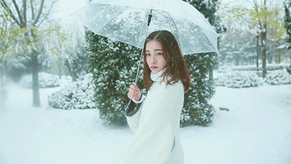 雪下的很大,記得帶一把傘,透明傘、紅色的傘、又或者彩虹傘都會很好看!