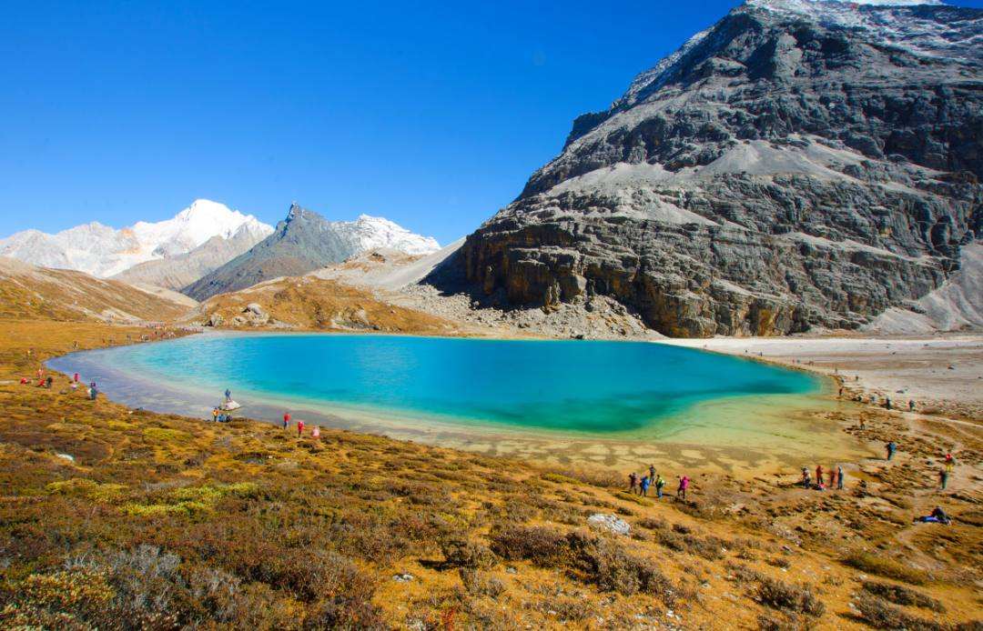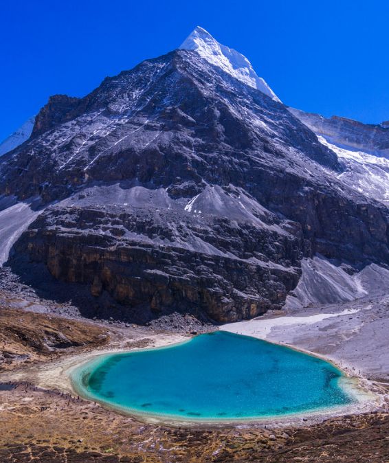 作為稻城亞丁的三大圣湖之首,神山中的綠寶石,牛奶海的中間是碧藍(lán)的雪水,周邊是一圈乳白色。