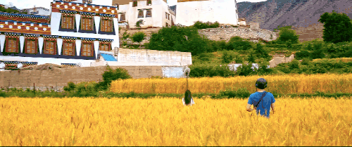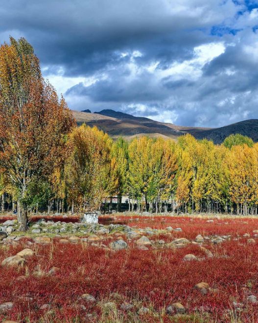 村落、河流、樺樹(shù)、青稞田、寺院,這里就是一幅旖旎的田園山水畫。每年9、10月,金燦燦的樹(shù)一列排開(kāi)。