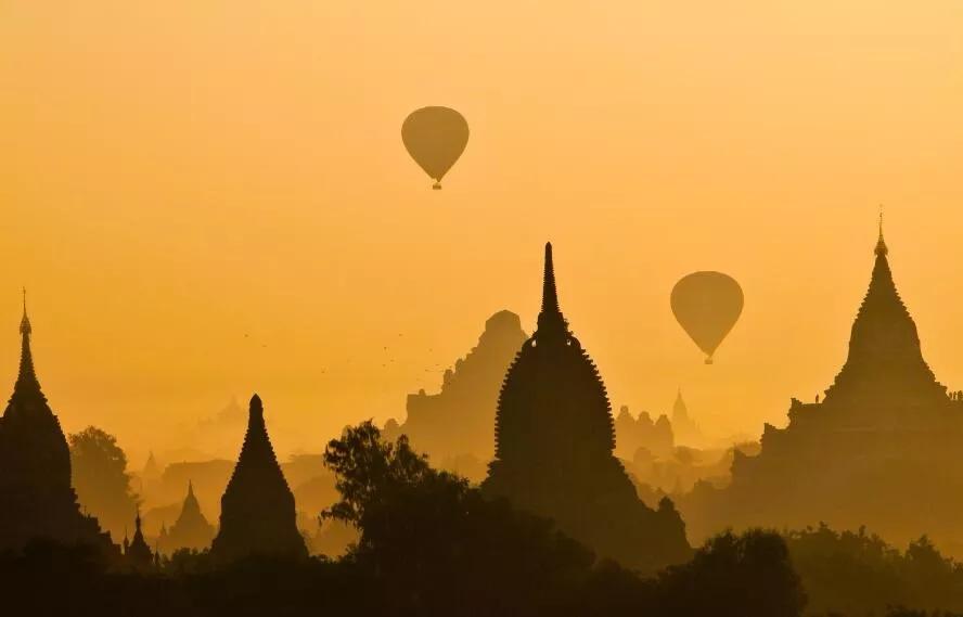 煙雨萬千佛塔中,熱氣球就是趣味點