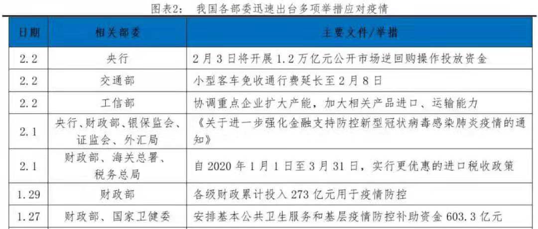 疫情發(fā)生后,央行、財政部、證監(jiān)會等多部委快速出臺應(yīng)對方案,釋放穩(wěn)定預(yù)期信號,對沖疫情影響,為受疫情影響的地區(qū)、行業(yè)、企業(yè)提供信貸支持,保證企業(yè)資金鏈、現(xiàn)金流的接續(xù),提振市場信心,維護(hù)市場穩(wěn)定。