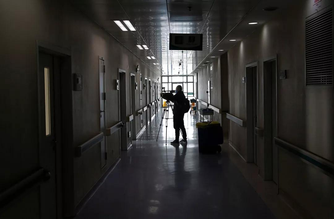 協(xié)和醫(yī)院西院新冠病房開始投用前一小時(shí),一位媒體老師在用攝像機(jī)記錄著病房。