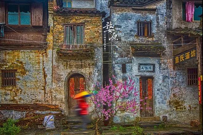 這張照片是在慶源村拍攝的。在這個古城兩旁是古建筑,中間是有一條小溪的,這個村落相對李村,李坑來說我認(rèn)為他更加原生態(tài)。這次婺源自由拍攝,對這個村印象最深刻的是因為兩旁桃花盛開,梨花也盛開,剛好下了雨,如果說你讀過雨巷,此時,走在這條古村,撐著雨傘,真的是走入了畫境里面了。所以還想去一次去這個地方,因為還有很多角度,有待慢慢挖掘。
