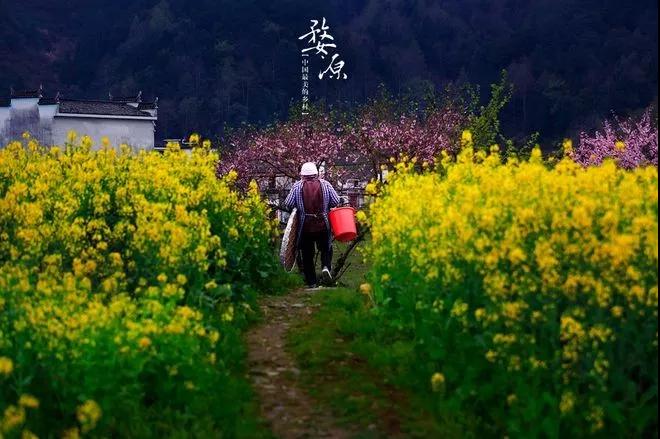 這張照片吸引人的原因就是因為前面這塊油菜花的線條非常有延伸感,而且還有圓形作為一個前景,背景是徽派的古建筑,遠(yuǎn)處的山峰,照片的層次非常好,非常有特點,運氣好的時候,遇上云霧會更漂亮。