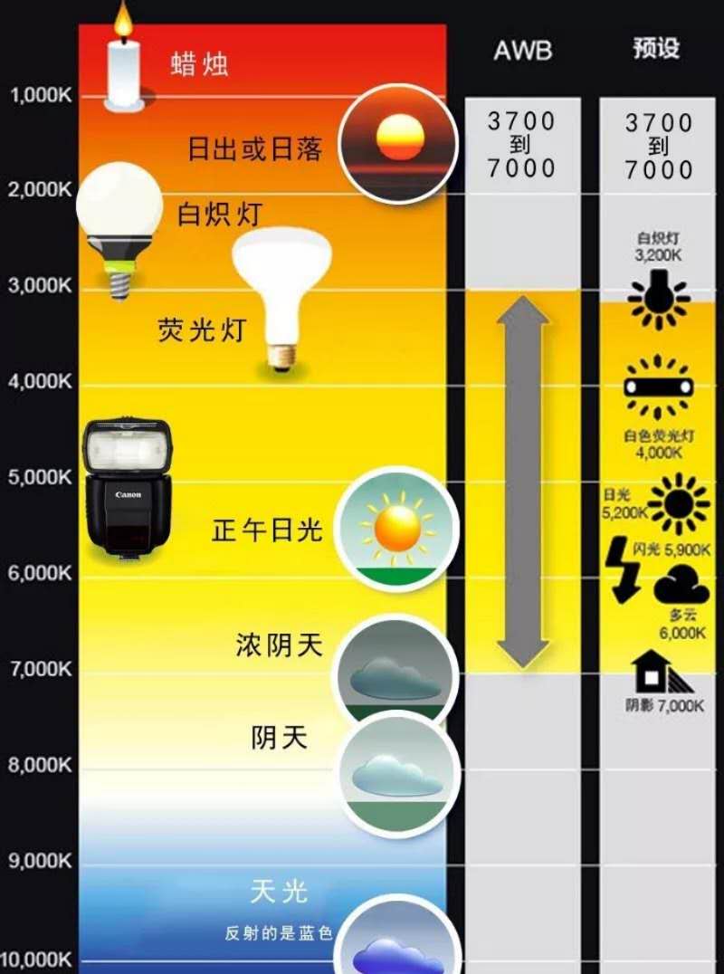 說(shuō)到色溫一定要說(shuō)說(shuō)什么是白平衡,白平衡的概念涉及到色彩學(xué)的知識(shí),作為初學(xué)者也不需要了解過(guò)深。只要明白白平衡是為了還原“白就是白”,也就是說(shuō)使您的照片更趨于人的視覺(jué)習(xí)慣。比如,我們?cè)诎谉霟魺艄獾姆块g內(nèi)拍攝人物,如果白平衡調(diào)整不好,就容易偏色,出現(xiàn)紅臉,設(shè)置適當(dāng)?shù)陌灼胶庾屓四樋瓷先シ弦曈X(jué)習(xí)慣,這就是使用白平衡的體現(xiàn)。白平衡調(diào)整可以手動(dòng)也可以自動(dòng)(AWB),也可以通過(guò)后期Camera raw工具調(diào)整白平衡,也可以利用色溫進(jìn)行藝術(shù)創(chuàng)作。