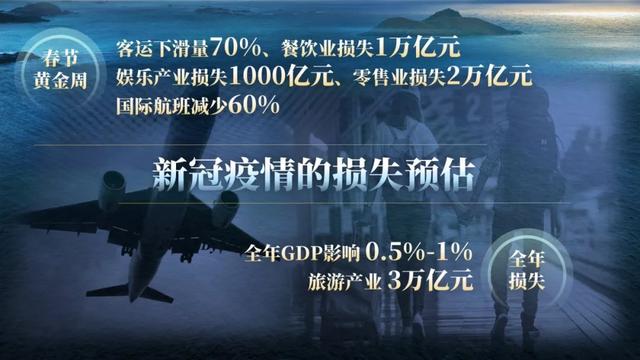 2019年大年初一,內(nèi)地電影票房為14億元,今年僅為140萬元。除此之外,今年的春節(jié)黃金周,春運客運量下滑70%,娛樂行業(yè)損失1000億,餐飲行業(yè)損失1萬億,零售業(yè)損失2萬億,國際航運減少60%。