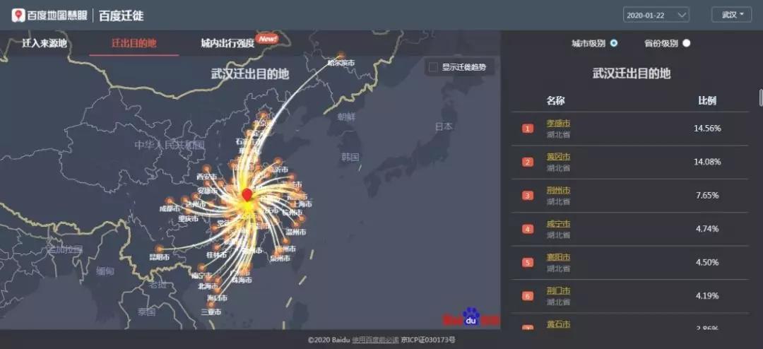 1月10日到23日從武漢流出了500萬人,通過大數(shù)據(jù)分析其具體流向,為各省市的疫情防控提供了精準(zhǔn)的方向。