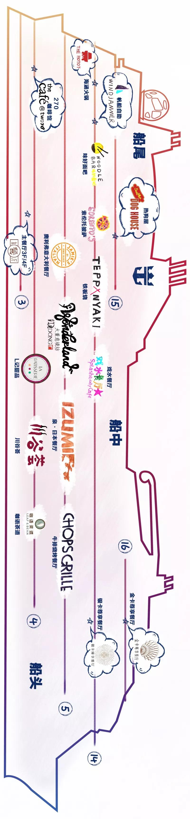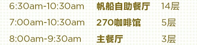早餐你可以任選以上三家餐廳,有自助也有點(diǎn)餐,滿足你不同的早餐需要,強(qiáng)小花貼心提示:船上超多好玩項(xiàng)目,只要吃飽了才有力氣一個(gè)個(gè)玩過來哦~