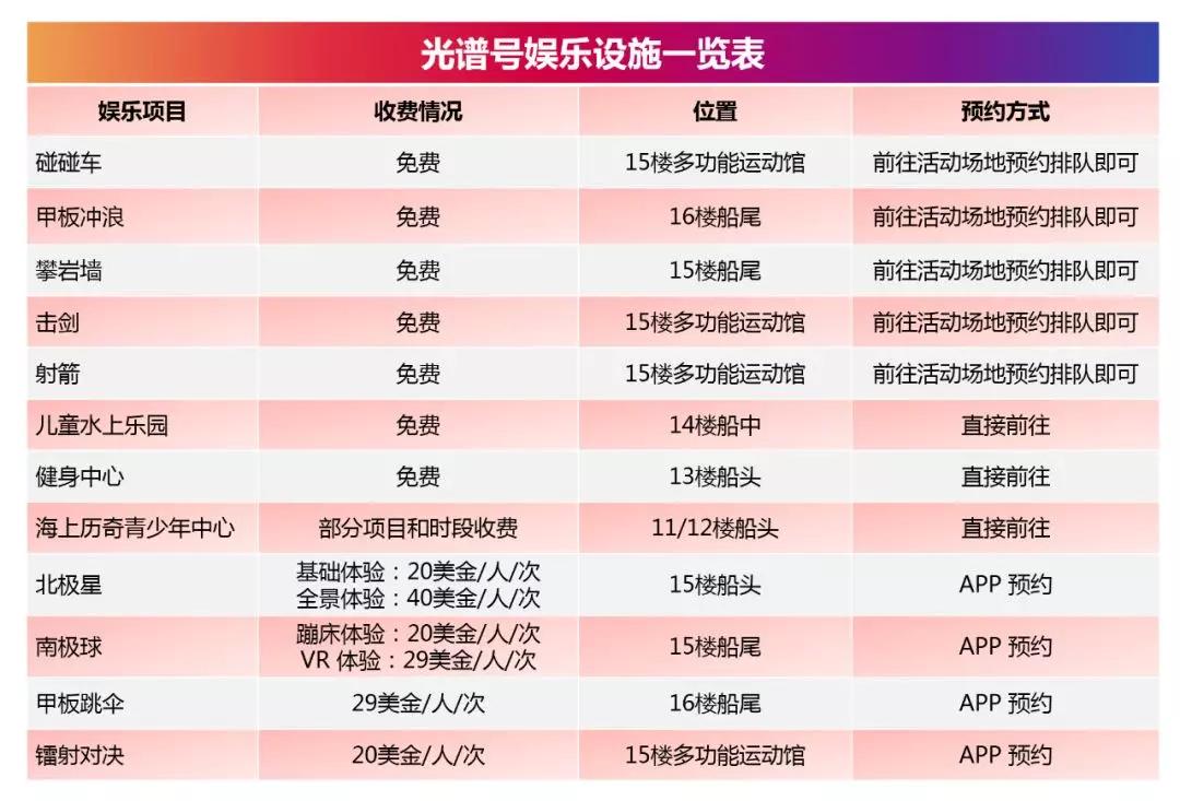光譜號(hào)的娛樂設(shè)施,和量子號(hào)相比有增無減,受歡迎的程度也不用小編多說啦!上船之后要是想要玩一些項(xiàng)目的話,記得及時(shí)預(yù)約哦。