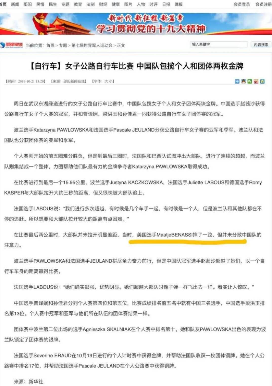 Maatje Benassi 有個親戚Matthew Benassi在發(fā)生泄露事故的美軍生化武器實驗室Fort Detrick工作。她去年10月作為女子公路自行車運(yùn)動員參加了武漢軍運(yùn)會,她是10月21日進(jìn)行比賽的。