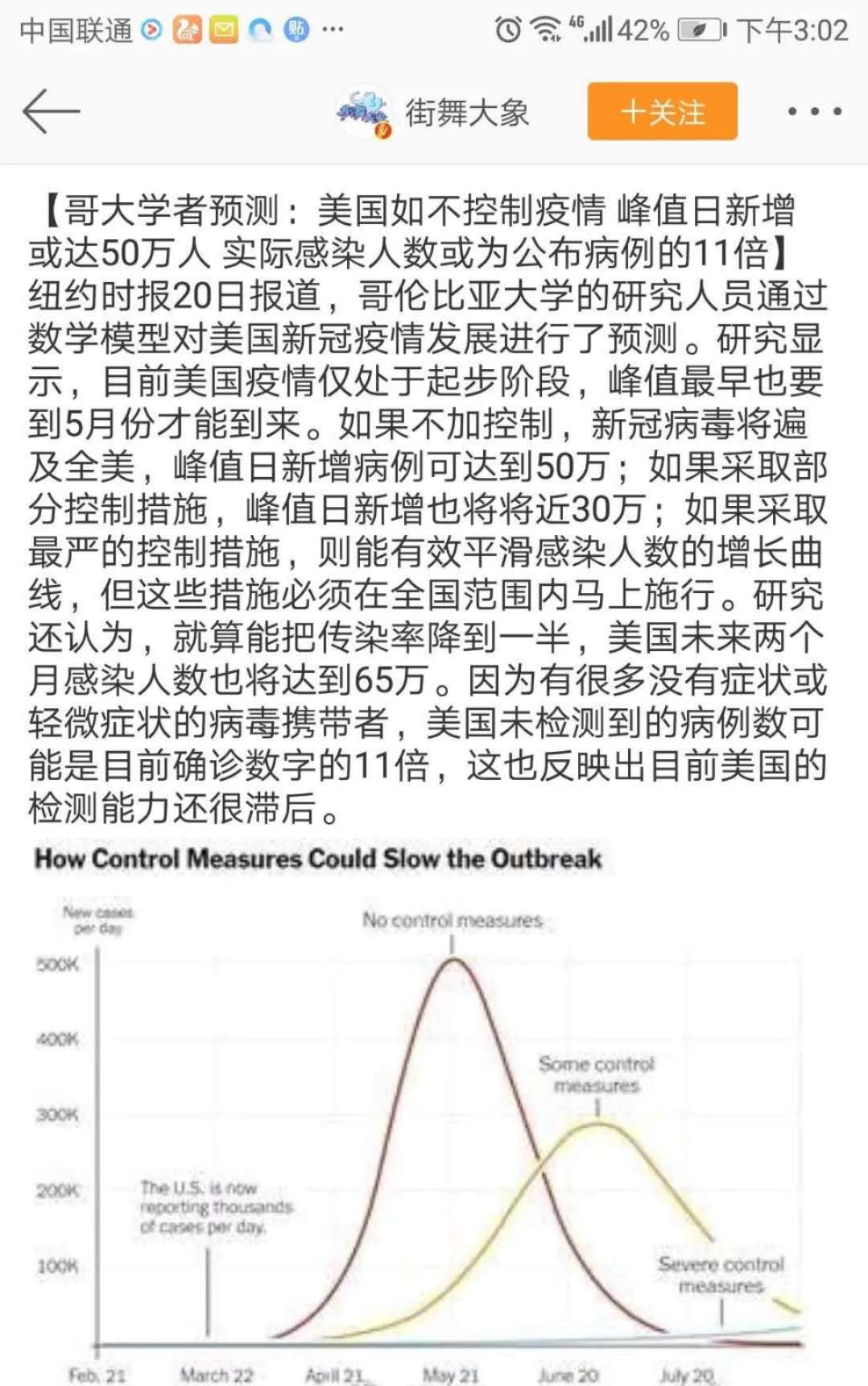 就這,還遠(yuǎn)不是美國疫情嚴(yán)重程度的真實情況,據(jù)美國專家估計,美國實際感染人數(shù)可能是確診人數(shù)的11倍。如果不加控制,新冠病毒將遍及全美,美國的峰值日可達(dá)到50萬。這是一個恐怖的數(shù)據(jù),令人感覺窒息。
