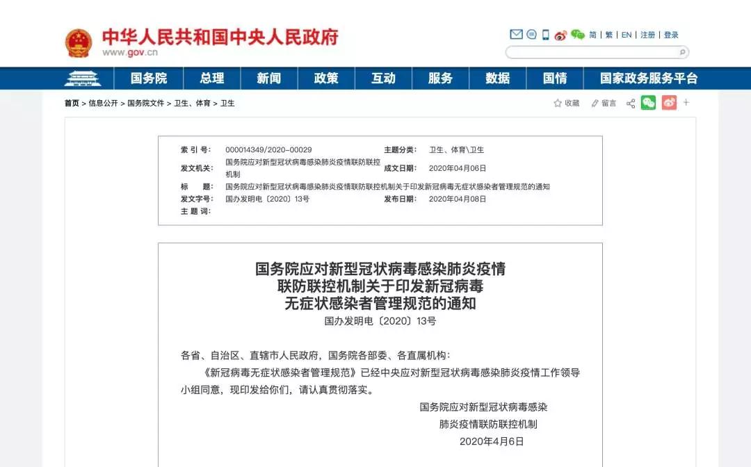 國務(wù)院應(yīng)對新型冠狀病毒感染肺炎疫情聯(lián)防聯(lián)控機(jī)制關(guān)于印發(fā)新冠病毒無癥狀感染者管理規(guī)范的通知