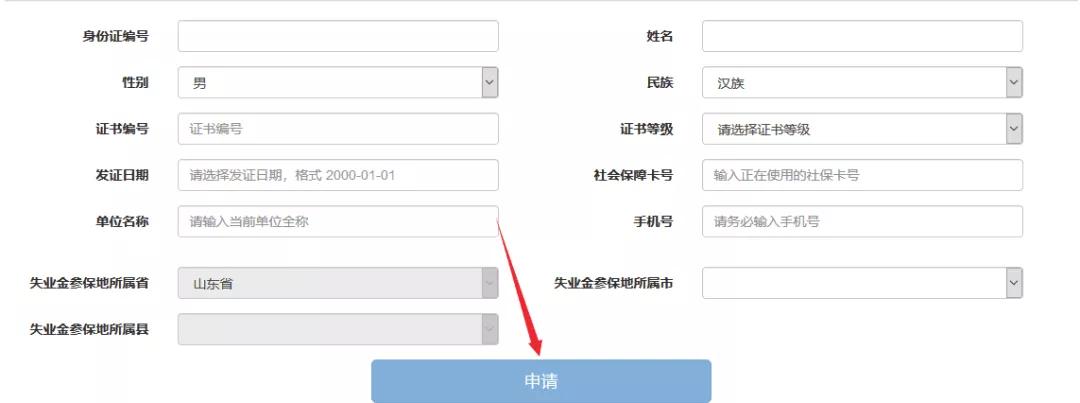 企業(yè)職工登錄申請?zhí)崾拘畔椤安樵儾坏阶C書信息”,可能為外省核發(fā)的或行業(yè)部門核發(fā)的技能人員職業(yè)資格,如屬于此兩種情況,請到當(dāng)?shù)厥I(yè)保險經(jīng)辦機(jī)構(gòu)服務(wù)大廳實(shí)施人工辦理。省本級參保,持外省核發(fā)證書的申請人在系統(tǒng)完善前,可攜帶身份證和證書原件到山東省人力資源和社會保障廳902、903辦理或委托單位集中辦理;持行業(yè)核發(fā)證書的暫不能辦理,待系統(tǒng)完善后,再行通知。
