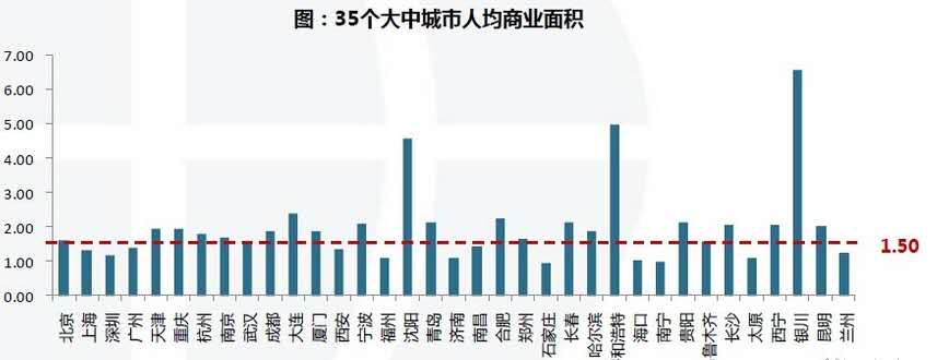 除北上廣深外,80%以上城市的人均商業(yè)面積都在1.5㎡以上!
