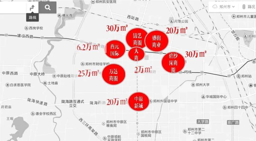 鄭州市中原區(qū)單單幾個大型商業(yè)中心的體量之和已經(jīng)突破130萬㎡。再加上約50萬㎡的社區(qū)底商,保守估計一下——