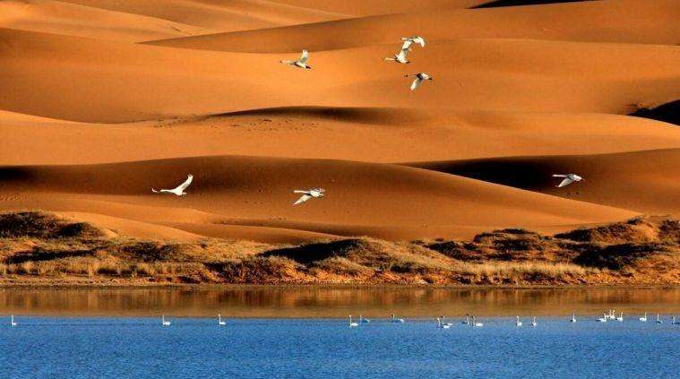 游覽完西夏王陵赴中國(guó)國(guó)第四大沙漠的騰格里沙漠。晚上赴阿拉善盟休息。