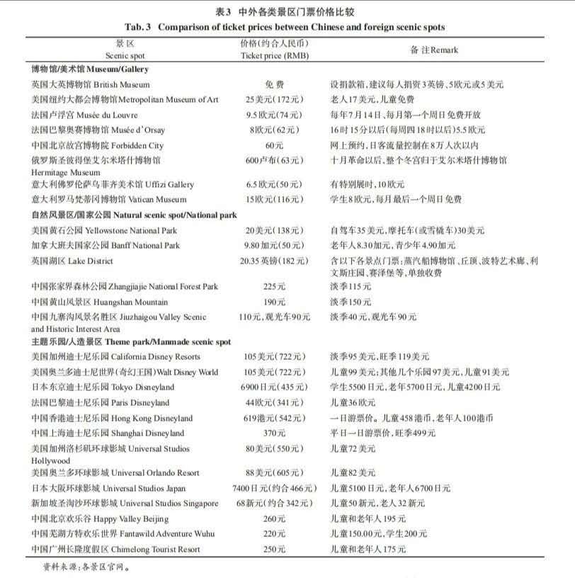 (1)景區(qū)門票價(jià)格總體而言并不算太高,與國際上同類景區(qū)相比,基本持平;