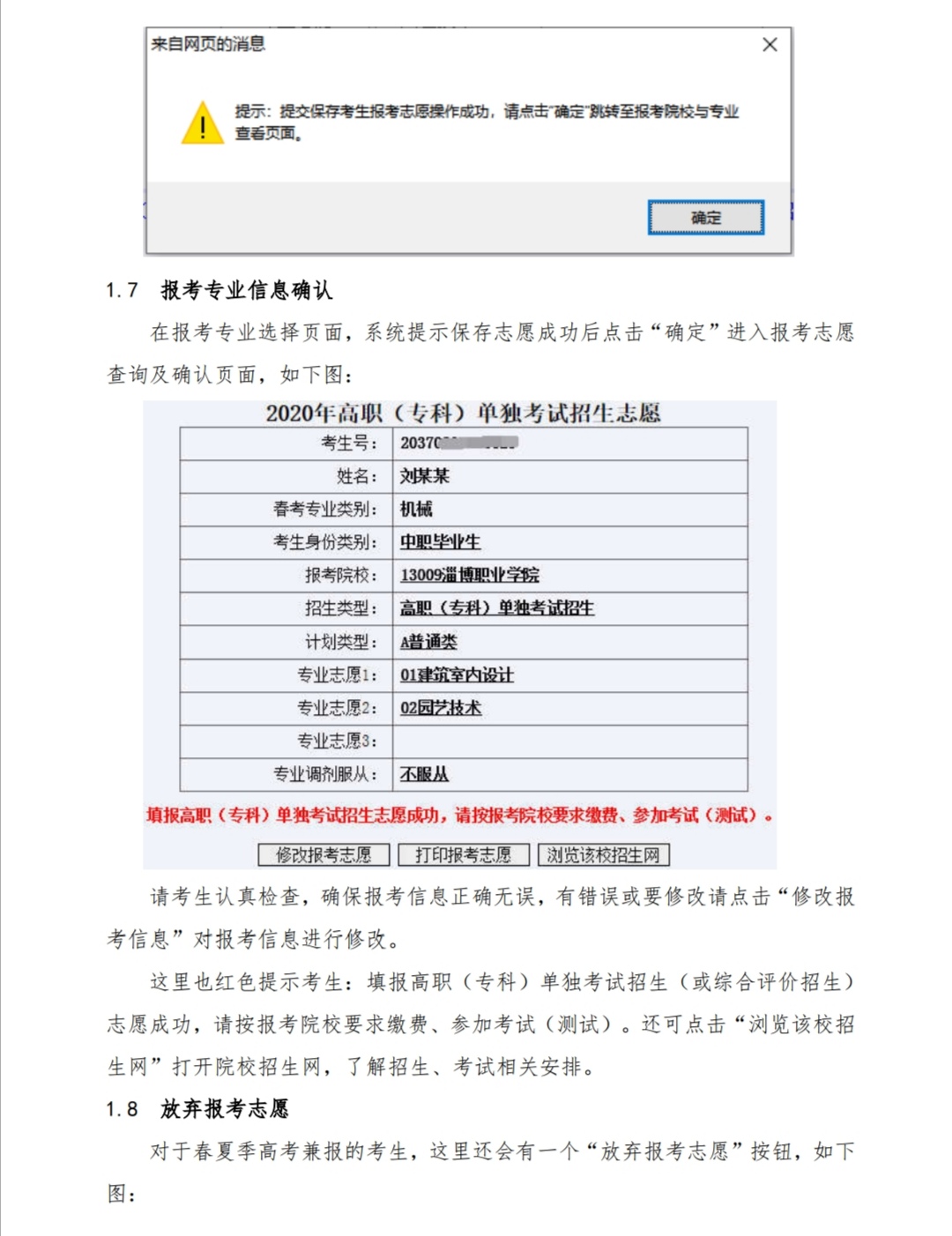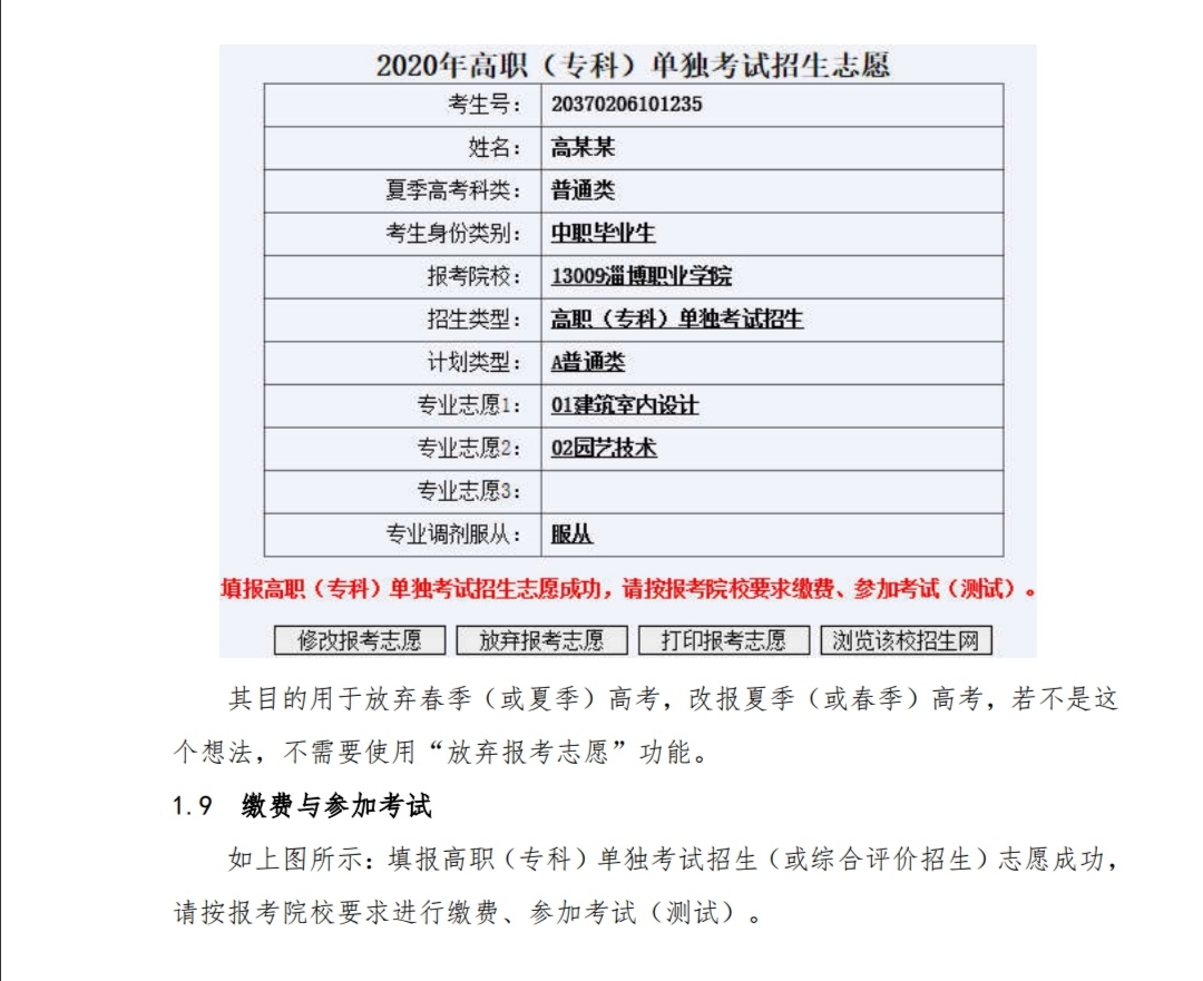 2020 年高職(專科)招生填報(bào)志愿平臺(tái)考生操作說(shuō)明