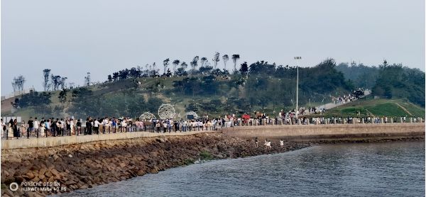 黃島雖然不是一個島,但他和青島市區(qū)的位置關系好比一個'c'字母的兩個端點,以前去黃島,要么做輪渡,要么環(huán)膠州灣繞個大圈倆小時,現(xiàn)在好了,修了海底隧道,坐隧道公交嗖的一下就過去了,出隧道口在跑一段就是金沙灘了,沙子極細腳感極好。
