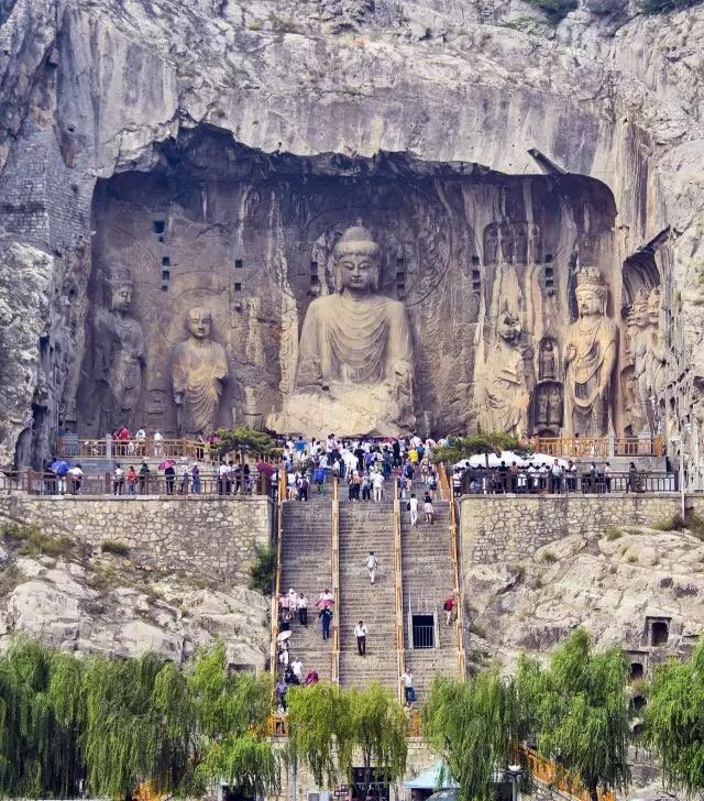 1、龍門石窟大型有規(guī)模的雕刻都位于龍門西山崖壁上,游客需借助臺階參觀游覽,游客在上臺階時注意安全,做到“走路不觀景,觀景不走路”。