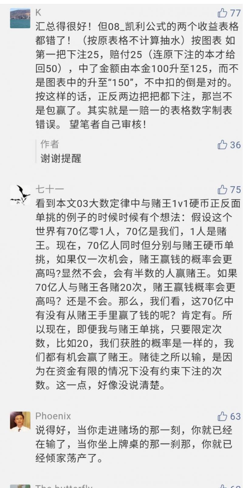 所以,就算你贏得了財(cái)神爺?shù)闹С?,但你也永遠(yuǎn)贏不了“凱利公式”。