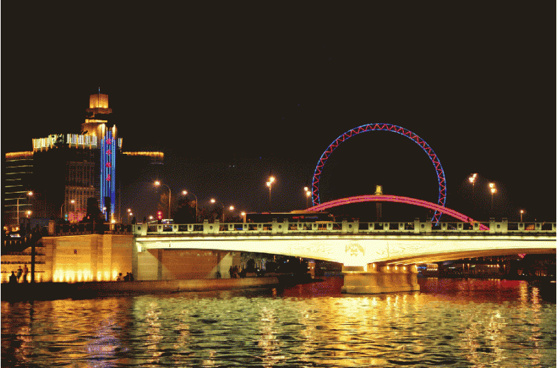 天津之眼全稱天津永樂橋摩天輪,位于天津市紅橋區(qū)海河畔,是一座跨河建設、橋輪合一的摩天輪,就像是橋上的一只眼睛,被譽為“天津之眼”。天津之眼是世界上唯一一個橋上觀景摩天輪,是天津的地標之一。