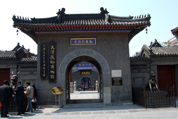 天后宮位于古文化街中心,也是古文化街古跡的核心,祭祀保佑出海遠航平安的天后娘娘,已有600余年歷史?,F(xiàn)在是天津民俗博物館的所在地,館內(nèi)介紹了天津城歷史、民俗,陳列著明代天津城磚、清代漕運模型、清代水機等文物。