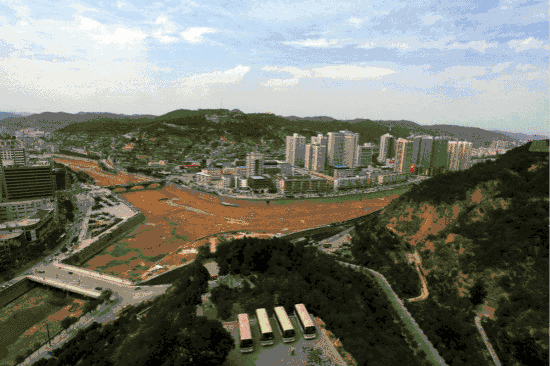 延安的地形可概括為“襟三山而帶兩河”,三山指的是位于延安市東南方的寶塔山,東北方的清涼山和西邊的鳳凰山;兩河指的是發(fā)源于延安東南45公里處南泥灣的南川河,另一條是延安吳起縣全長268公里,流經(jīng)整個延安市的延河,兩河在寶塔山下匯合,東折90流經(jīng)延長最終匯入黃河。站在寶塔山上,延安全貌一覽無余。