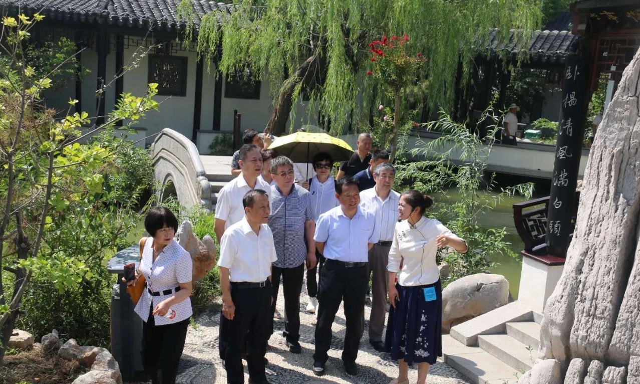 在檢查調(diào)研過程中,杜秘書長一行邊實地檢查調(diào)研,邊聽取介紹,并不時詢問了解相關(guān)情況,對宛園突出文化靈魂,精造旅游載體的做法給予高度評價,他們認(rèn)為:“宛園”是一家“江南古建,水鄉(xiāng)風(fēng)格”的蘇式園林。它匯集眾家名園精華,布局精巧,疏密得當(dāng)、移步易景、曲徑通幽;磚雕、木雕、泥雕、青磚灰瓦、奇石遍布,盡顯靈秀氣息;契合了“山水詩、山水畫、山水園”相融合的意境,完美地實現(xiàn)了“千景匯集小天地,千幅圖畫在園中”的藝術(shù)效果。中國運河名揚天下,宛園美景享譽四方。同時,他們高屋建瓴,指出了園林建設(shè)中,不被人們意識的瑕疵,提出了頗有見地的指導(dǎo)意見和極具針對性的建設(shè)性建議。這些意見和建議對“宛園”的進(jìn)一步提高、完善和發(fā)展將起到積極的推動作用。
