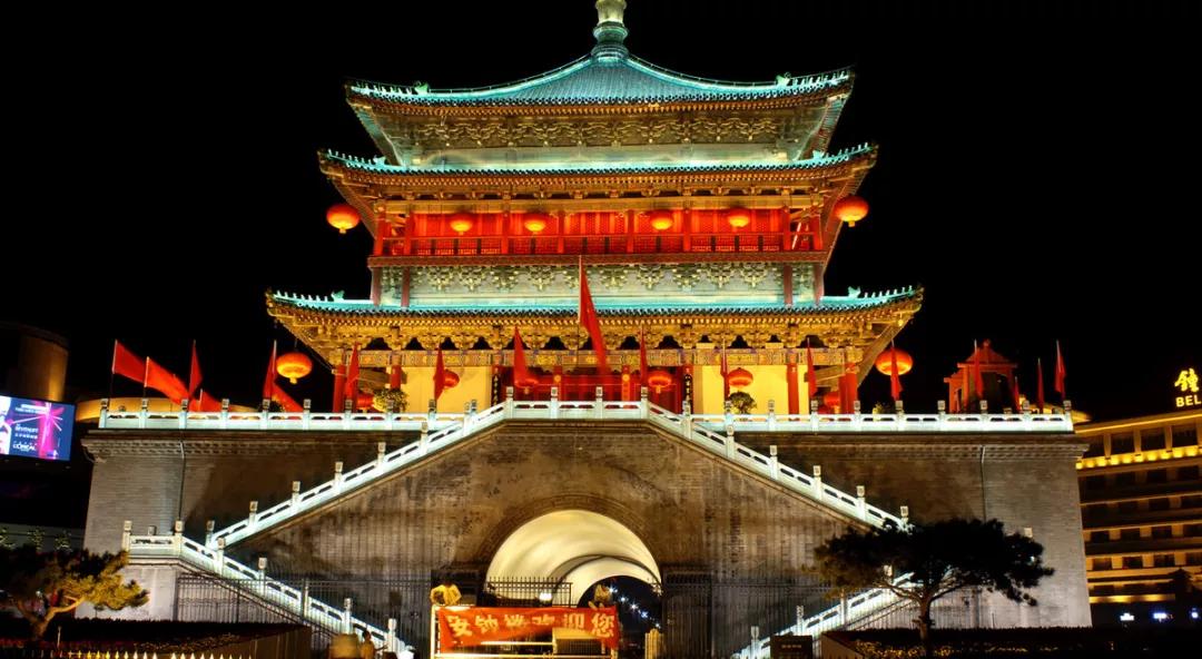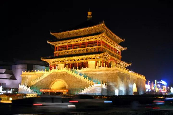 西安鐘樓始建于明洪武十七年,是一座重檐三滴水式四角攢尖頂?shù)拈w樓式建筑,面積1377.64平方米,建在用青磚、白灰砌成的方形基座上。西安鼓樓始建于明洪武十三年建于高大的長方形臺基之上,臺基下辟有高和寬均為6米的南北向券洞。