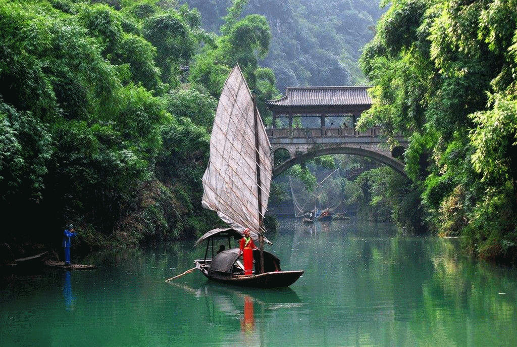 【三峽人家風(fēng)景區(qū)】依山傍水,風(fēng)情如畫:傳統(tǒng)的三峽吊腳樓點綴于山水之間,久違的古帆船、烏篷船安靜地泊在三峽人家門前,溪邊少女揮著棒槌在清洗衣服,江面上悠然的漁家在撒網(wǎng)打魚……千百年來流傳不衰的各種習(xí)俗風(fēng)情體現(xiàn)著峽江人民的質(zhì)樸好客。