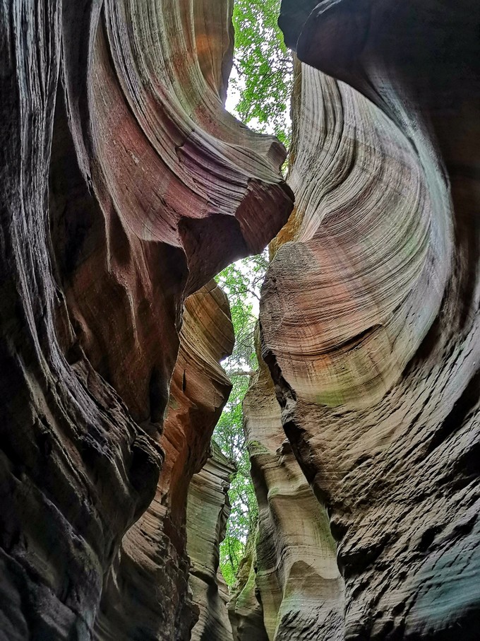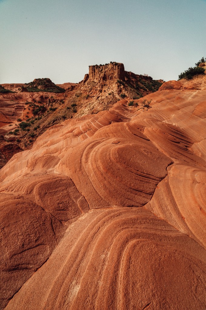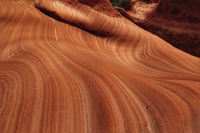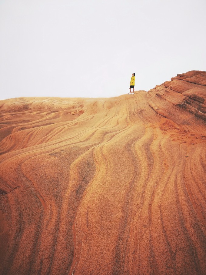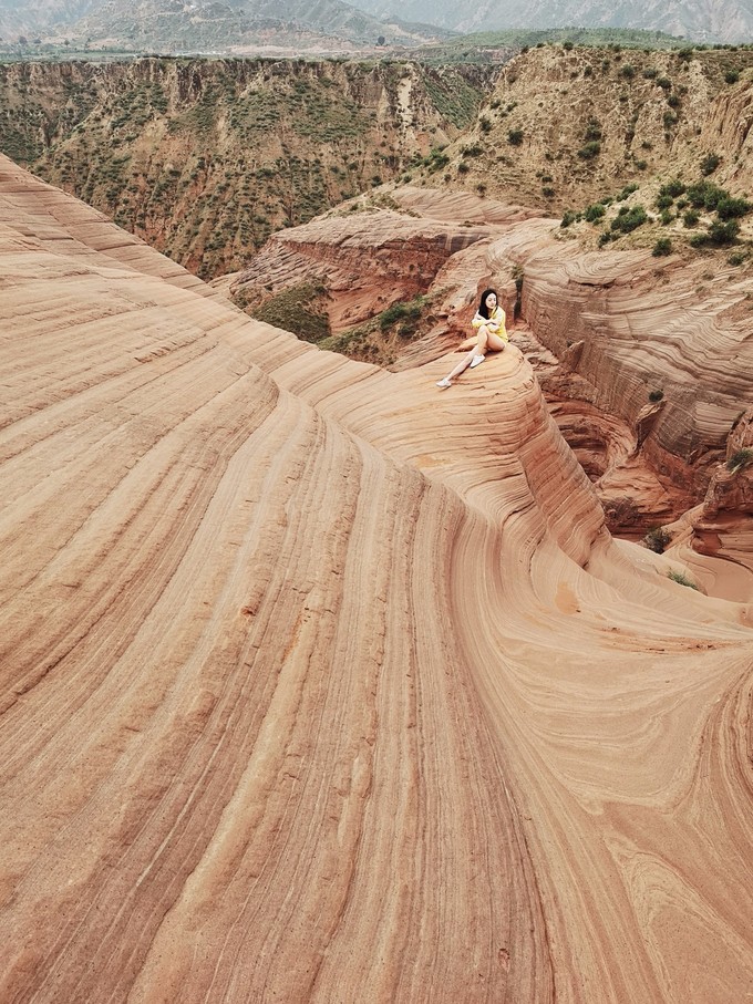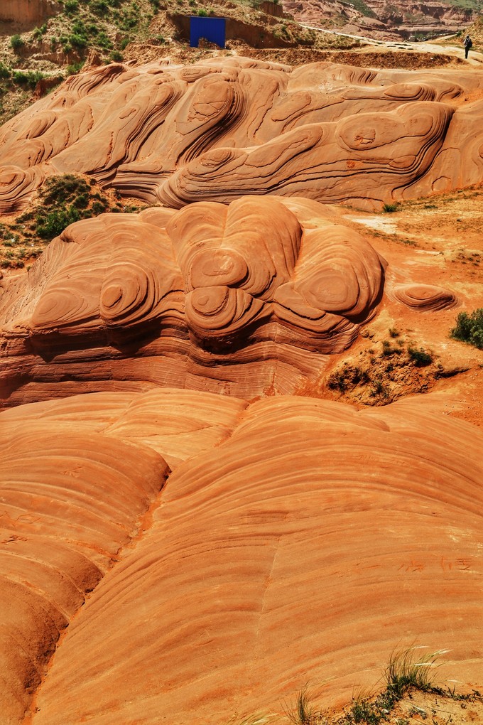 龍洲丹霞B景區(qū),目前命名火焰丹霞,也是最類似美西波浪谷的地方,這里向我們展示了由數(shù)百萬年的風(fēng)、水和時間雕琢砂巖而成的奇妙世界。深深的溝壑里,千百年雨水沖刷成各種各樣奇特的線條,形狀如波浪、獸首、流水、云朵....展示著風(fēng)采神韻、萬千姿態(tài)、四季景色各異。