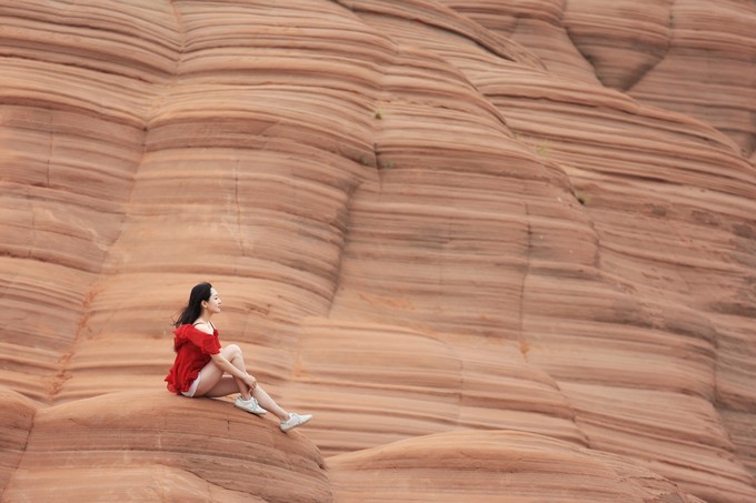 波浪谷狀的丹霞地貌,是由一億五千萬年前侏羅紀時期沉積的巨大的沙丘所組成,沙丘不斷地被一層層浸漬了地下水的紅巖所覆蓋,天長地久,水中的礦物質(zhì)把沙凝結(jié)成了砂巖,形成了層疊狀的結(jié)構(gòu),所以被譽為“時光的指紋”。讓我們一起走進這紅色魔幻世界。