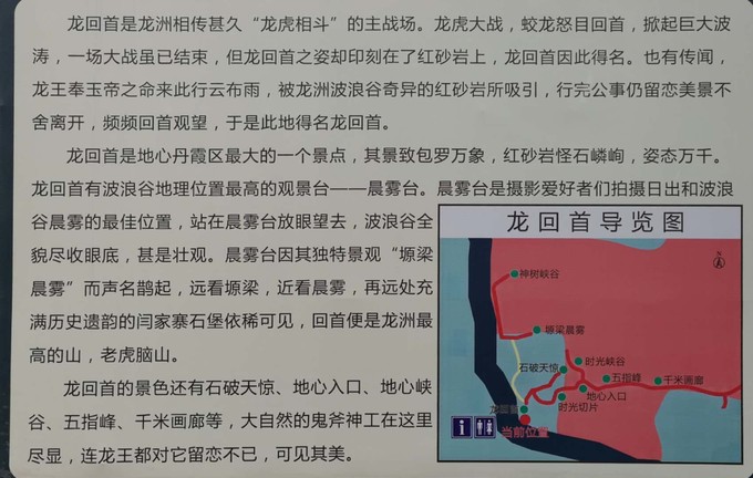 龍洲丹霞目前正在被開發(fā),設(shè)在景區(qū)停車場的項目分布圖,表明了未來的規(guī)劃,收費之日不遠了。
