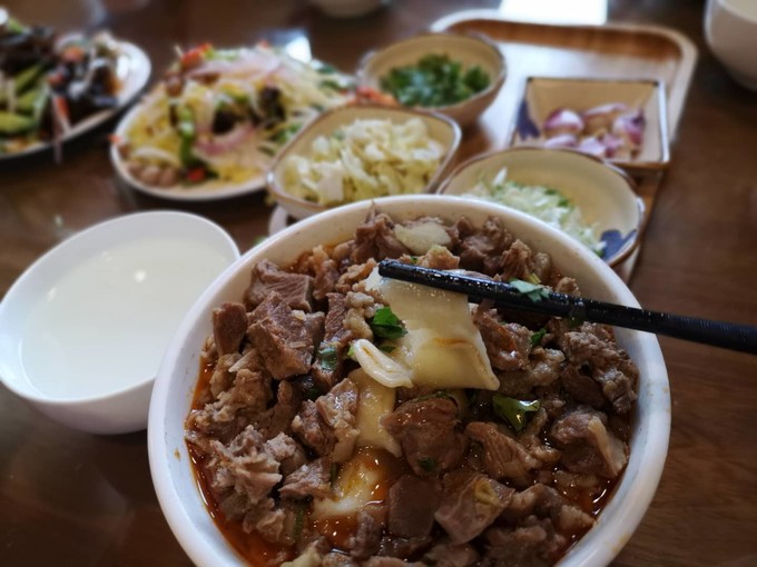 強烈推薦靖邊縣的“龐學(xué)勤兄弟羊肉面”!可以選面條或面片,面條端上來滿滿的一層羊肉!優(yōu)質(zhì)羊肉面大碗37元,小碗34元,羊肉完全不膻,超級香!