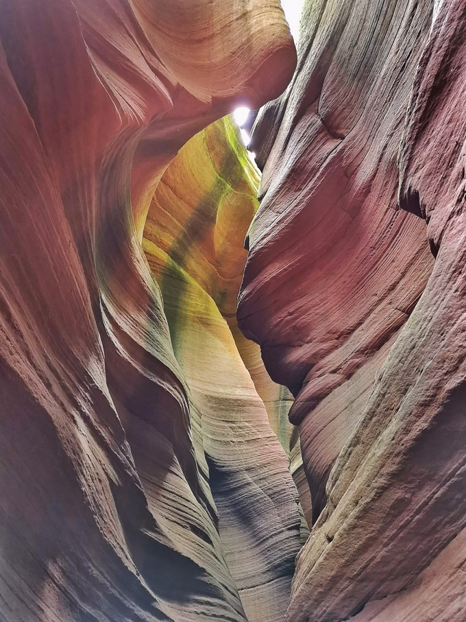 樺樹溝是景色最美最精華的峽谷,全長300米左右,溝里游客很多,多到走不動路。中午11點至下午2點光線最好,因為峽谷頂部狹窄,如果沒有光線谷內(nèi)比較幽暗。樺樹溝上窄下寬, 和龍巴溝相反,巖石更有曲線和紋理,色彩也更豐富,配合恰好的光線,絕對能出大片。