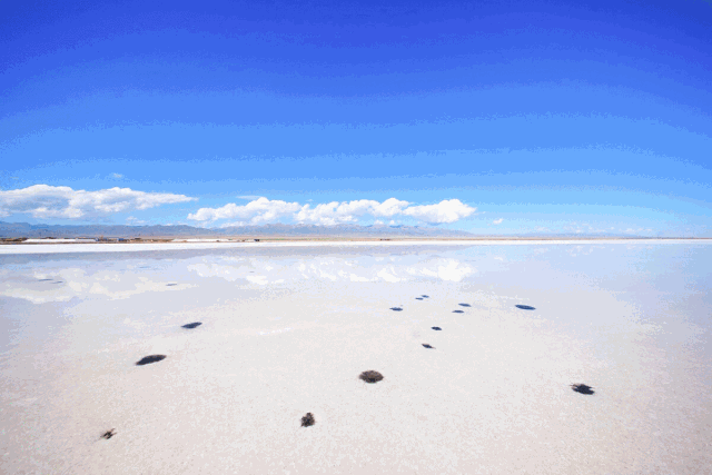 2.在湖中行走一定要注意鹽湖中的鹵水坑,鹽湖中有很多大大小小的鹵水坑,在拍照的時(shí)候一定注意腳下不要掉進(jìn)去;