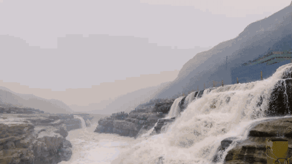 一是300米寬的黃河擠進(jìn)小小的壺口后轟然落下,瞬間迸發(fā),或是砸入澗底,由此水汽飛漲,就形成了水里冒煙的奇景。